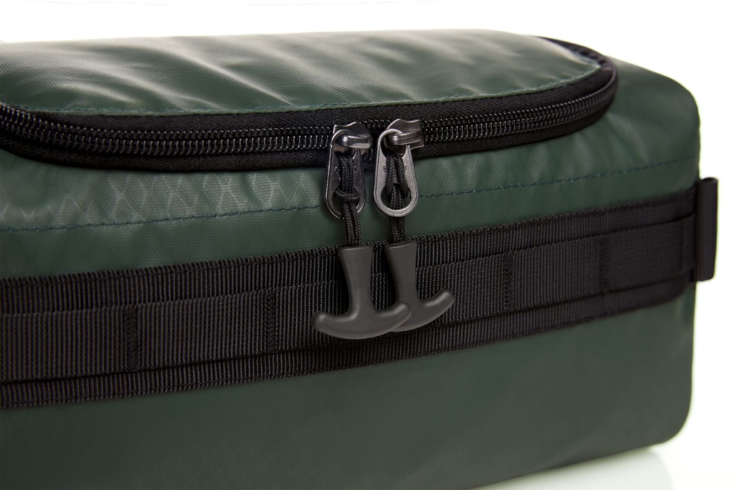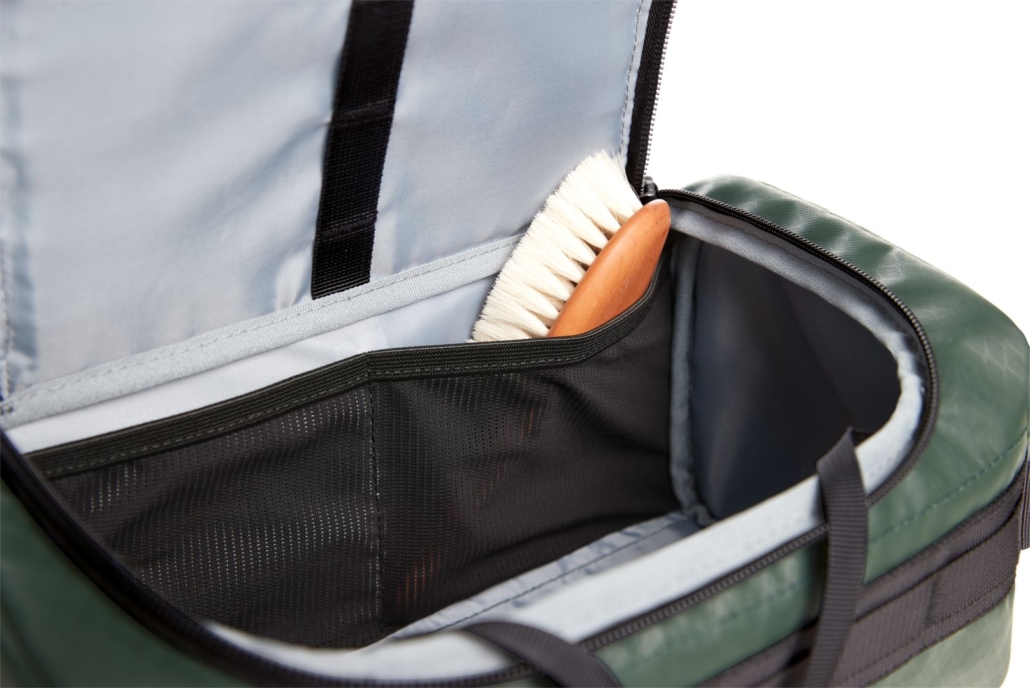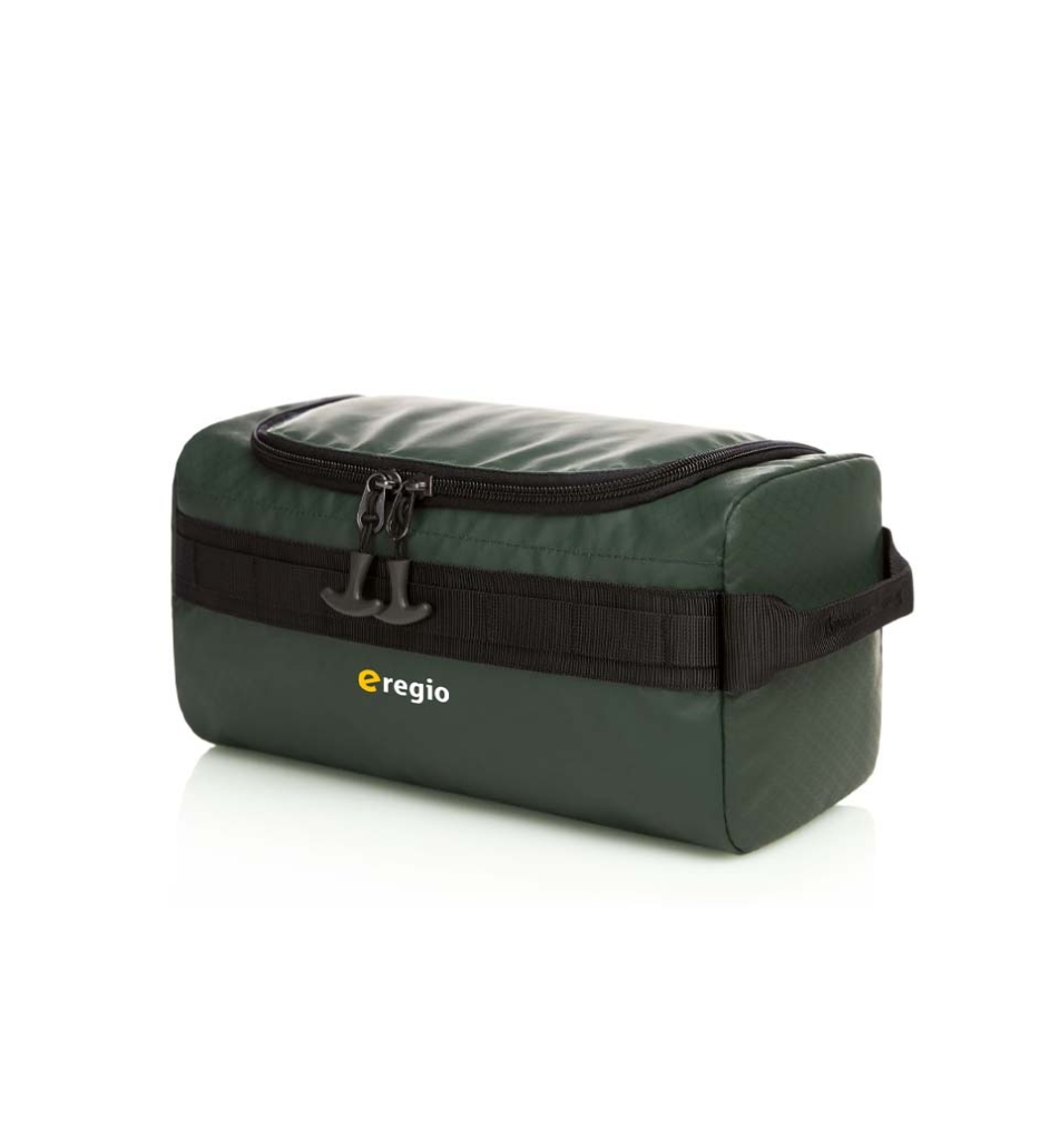Aufwändig gearbeitet und gepolstert; zum Aufstellen oder -hängen; Deckel-Reißverschlussfach; funktionales Schlaufenband innen und außen; zwei Netzeinsteckfächer sowie eine flache Reißverschlusstasche innen; Handgriff
