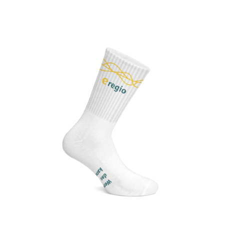 E-regio Sportsocken im Motiv „Wenn du das lesen kannst, dann bin ich auf Standby“.